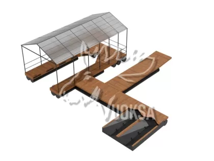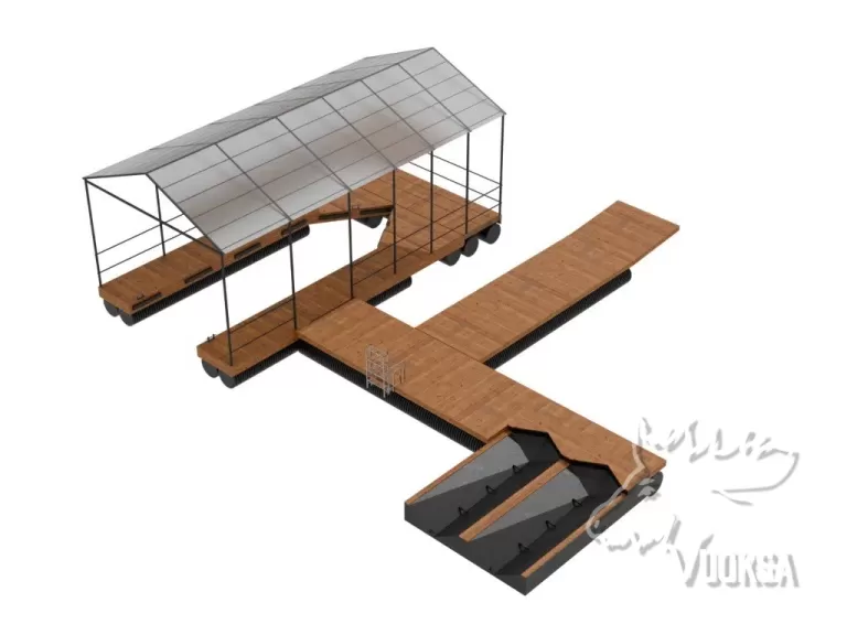 Пирс Т-образный пирс, эллинг с крышей 8х5м и понтоны для гидроциклов 4.2х1.55м