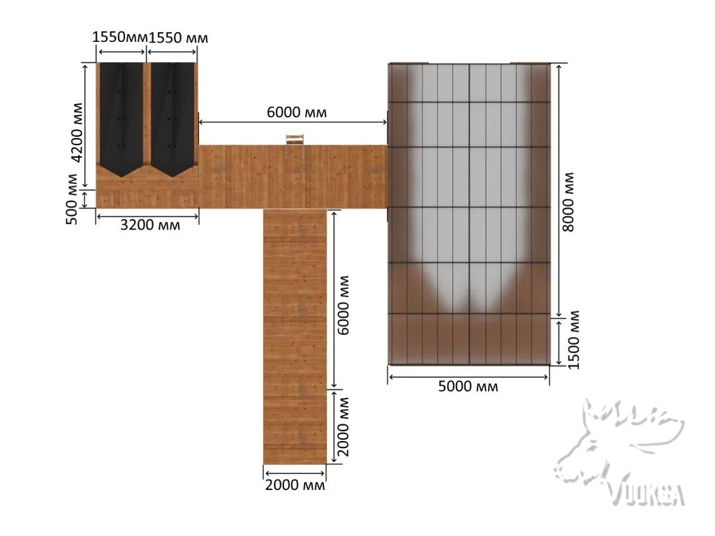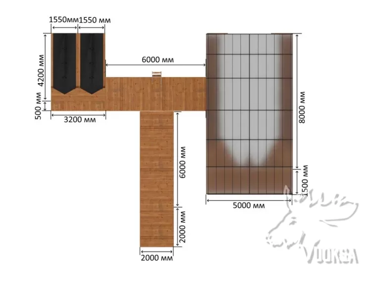 | Габариты ДхШхВ (мм) | 6000*2000*730 (пирс 2 шт.) 8000*5000 (эллинг) 4200*1550 (понтон под гидроцикл 2 шт.) 3200*500 (понтон для крепления понтонов под гидроциклы) 2000*2000 (сходни) |