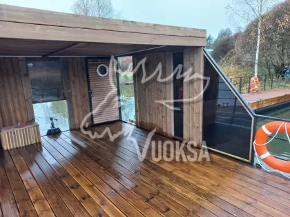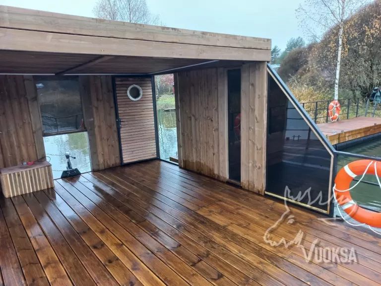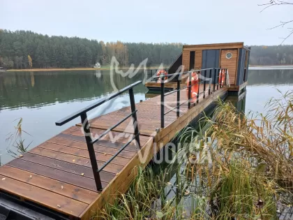Для ценителей уединения и гармонии с природой мы создали плавучую самоходную беседку с пирсом для швартовки по индивидуальному дизайну. Это настоящий островок комфорта и уюта на воде, где каждая деталь продумана для вашего отдыха.