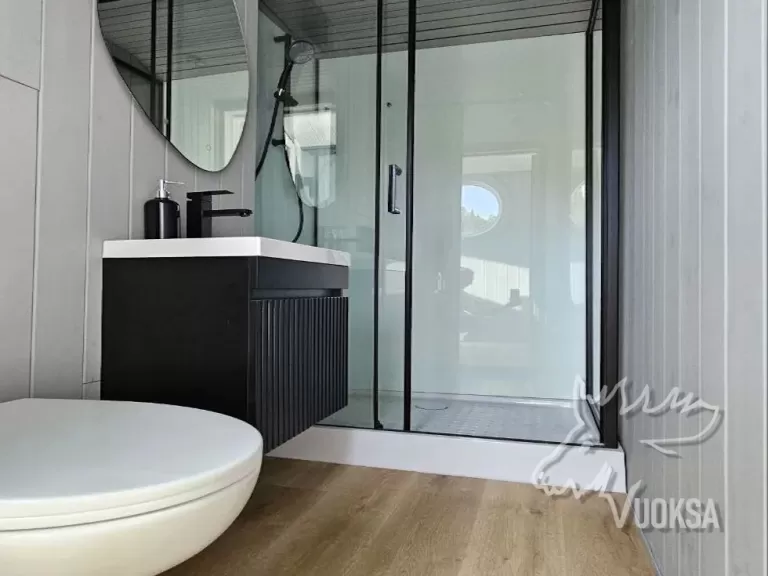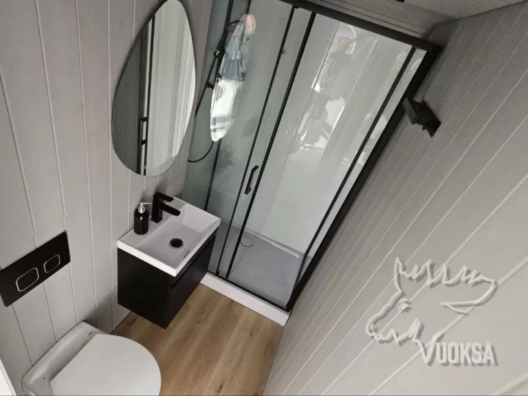 Душевая кабина, инсталляция с унитазом, раковина, зеркало